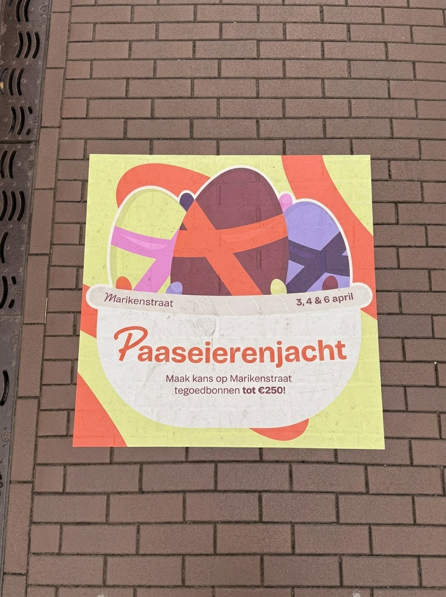 We ontwikkelen een interactieve paaseierenjacht door de hele straat. Bezoekers gaan op zoek naar paaseieren in verschillende winkels in de straat en maken kans op een van de Marikenstraat vouchers tot wel €250.